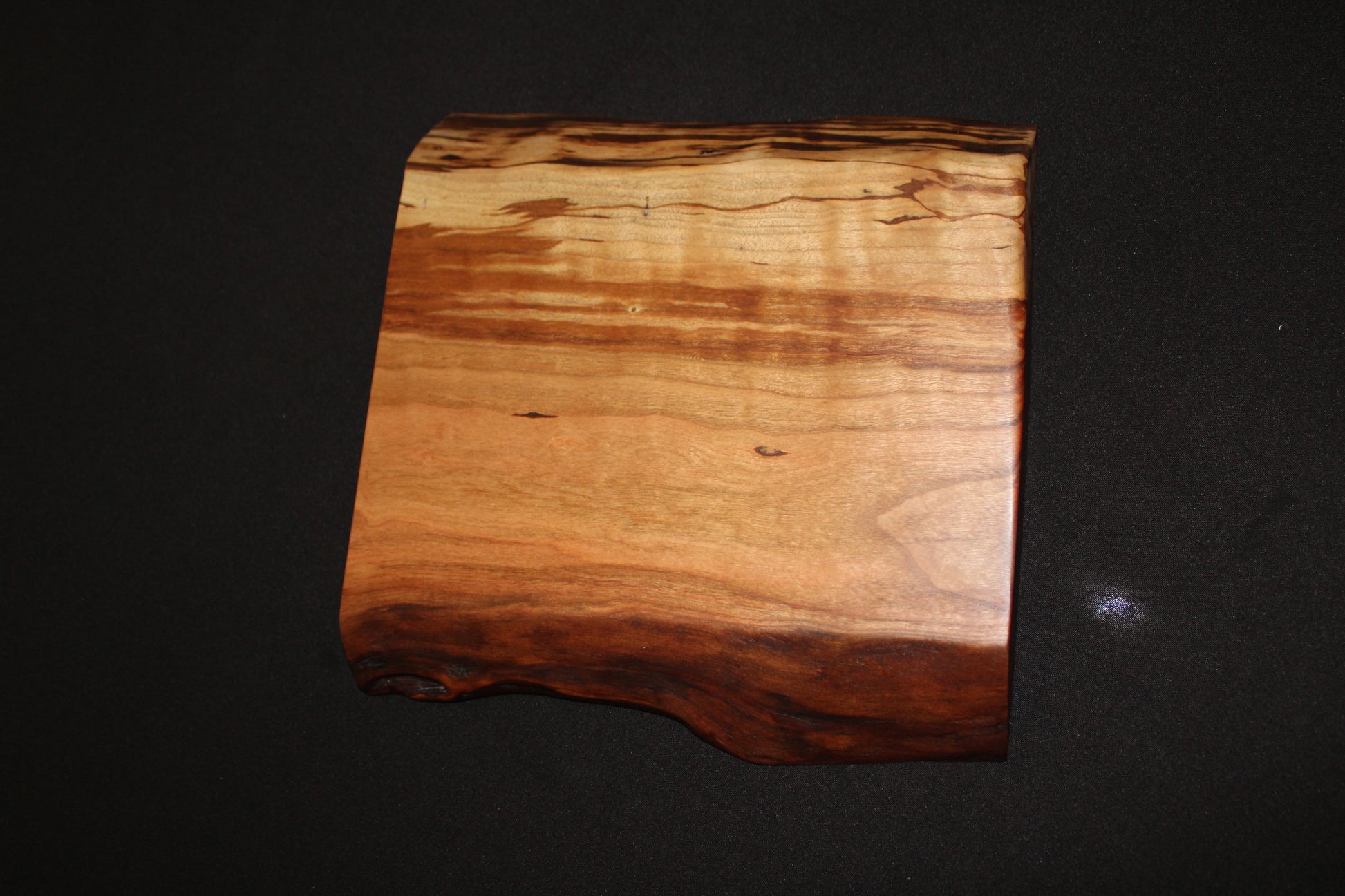 This live edge cherry charcuterie board is the last board from this piece of cherry and showcases a unique piece of cherry wood discovered in 2022. Measuring 10" by 10". it is meticulously handcrafted to preserve the natural contours and rich tones of the wood. Ideal for serving or display, its organic edges and expert craftsmanship make it both functional and a stunning conversation piece.