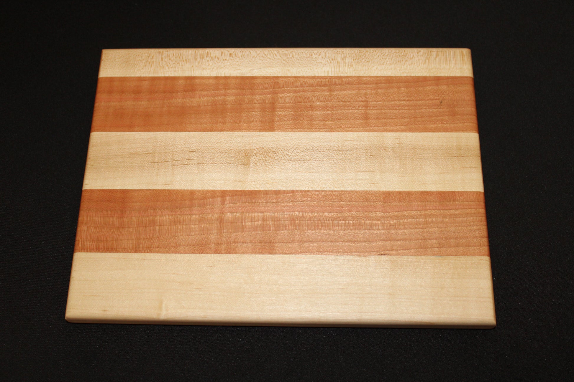This 9" x 12" edge grain cutting board combines durable maple with elegant walnut or cherry accents for a stylish yet practical kitchen essential. Ideal for daily use, it offers a solid surface that resists knife marks and maintains sharpness. Complimentary laser engraving adds a personal touch, making it a favored gift, especially among realtors who appreciate its quality and utility for client gifts. Perfect for both home chefs and professionals seeking a reliable cutting surface with refined craftsmanship.